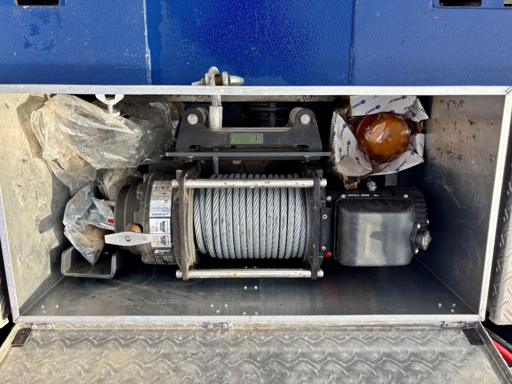• elektr. Seilwinde von Horntools mit 8,00 to. Zugkraft, Funkfernbedienung, 26 m Stahlseil und Seilführung